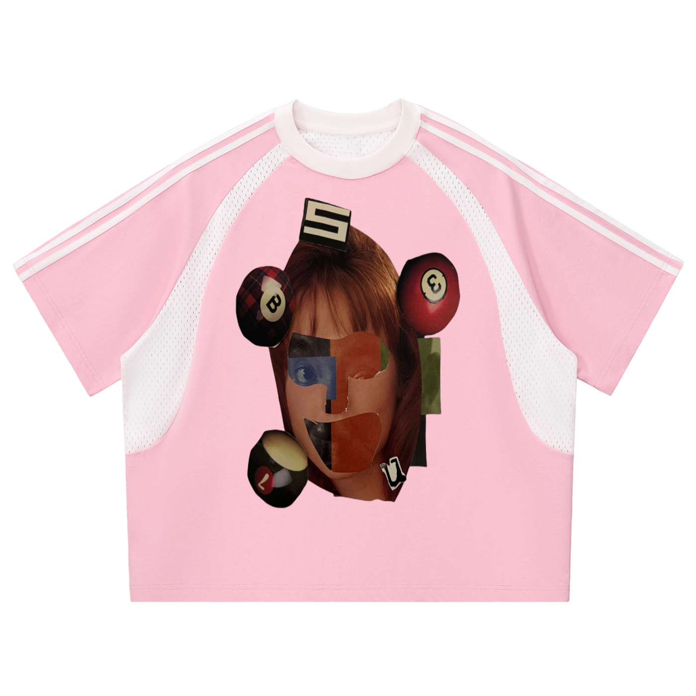 Contrast Stripes Panel Mesh T-shirt